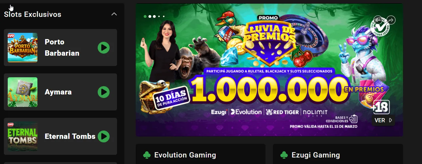 | Proveedores listados | Nombres de proveedores (Evolution, Pragmatic, NetEnt, etc.) | Confirmar lista en sección “Proveedores” o en la ficha de cada juego. Pida pruebas o certificados si indican títulos exclusivos. |
